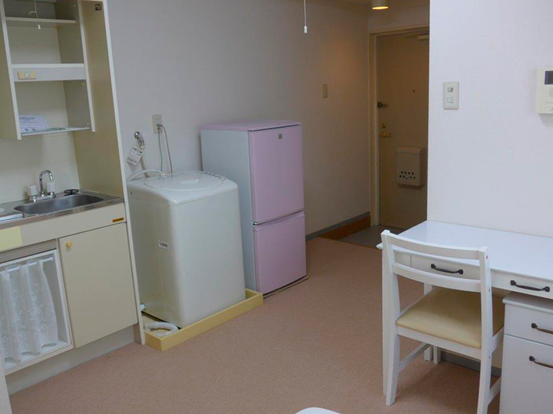 洗濯機、IHクッキングヒーター、エアコン、2ドア冷凍冷蔵庫、ベッド、吊棚、BS及び地デジ対応20型TV、勉強机又はテーブルが備え付けてあります。その他、電子レンジ、電気釜等の電化製品については契約時にご相談ください。